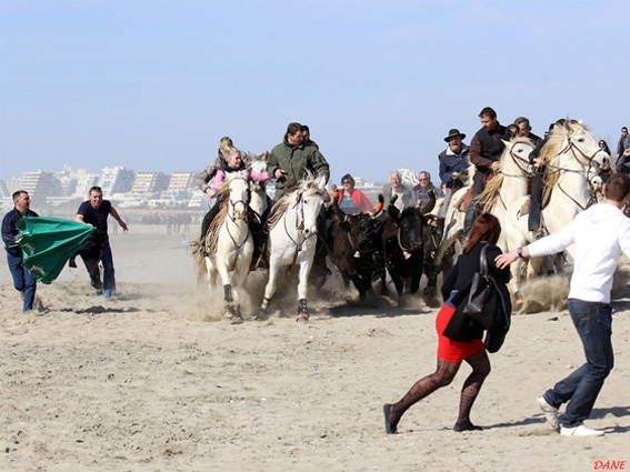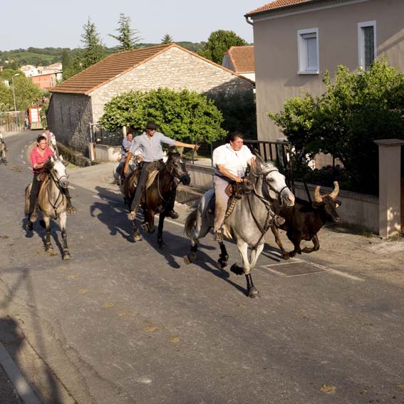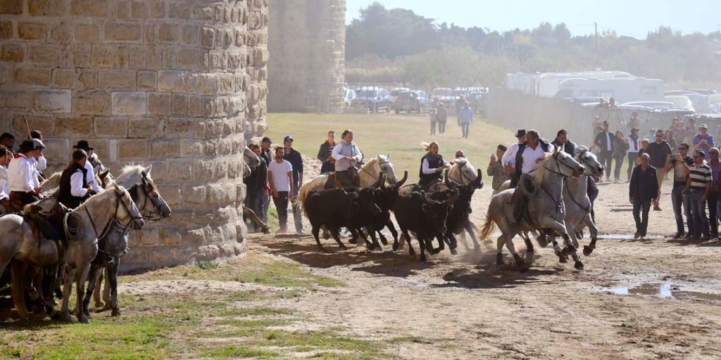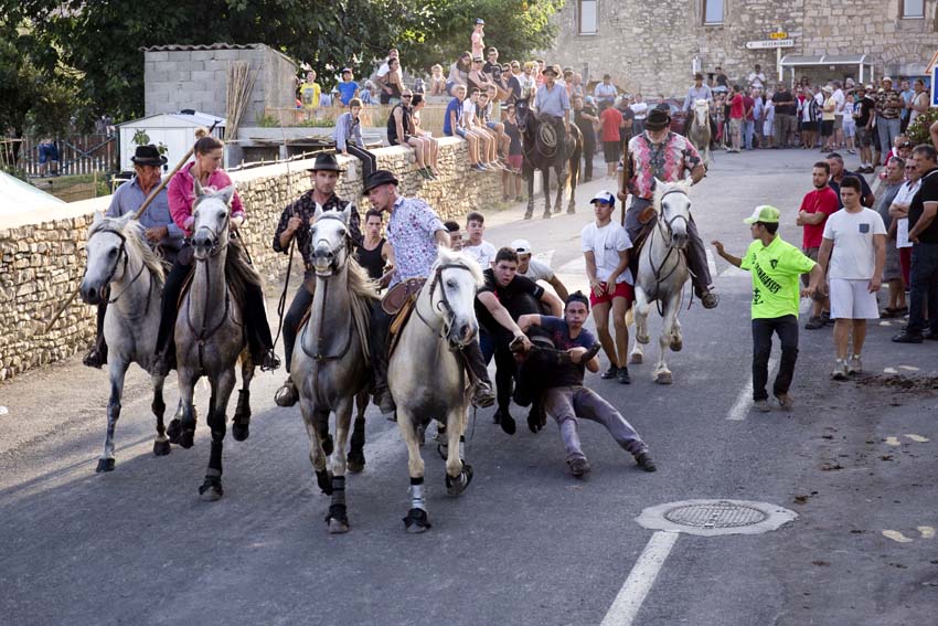 Les abrivados: cela consiste, pour les gardians à ramener les taureaux, et pour les spectateurs, à les en empêcher et faire échapper les taureaux…