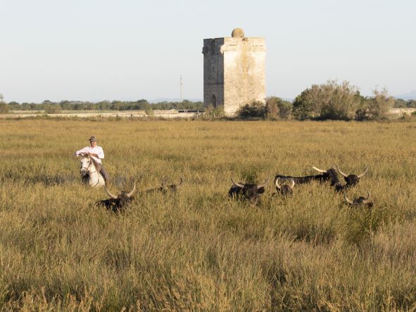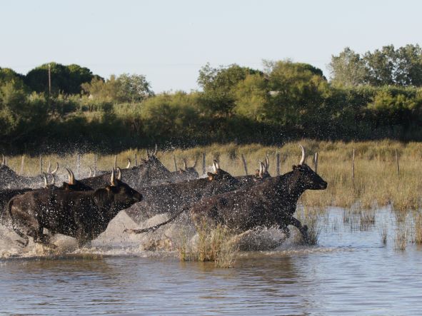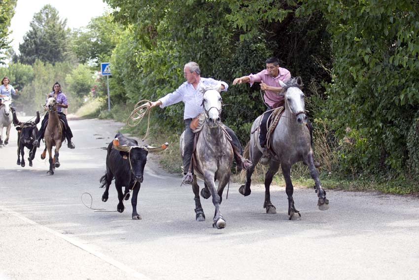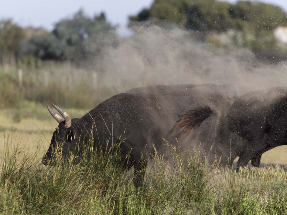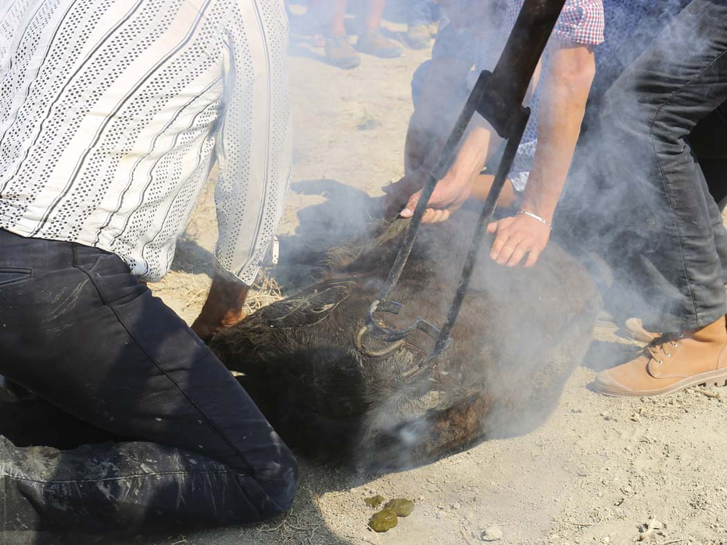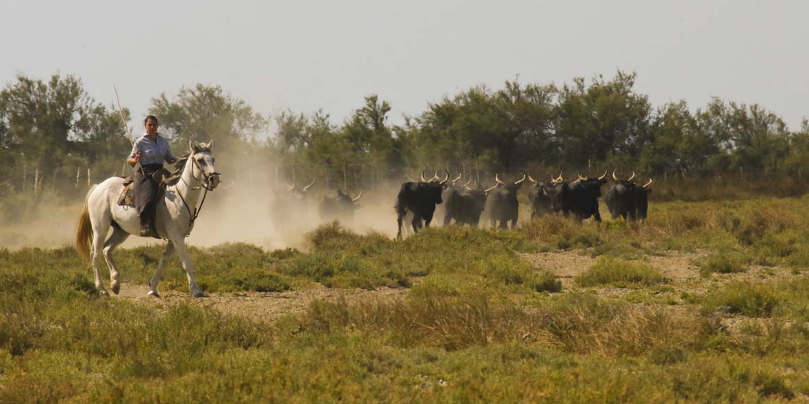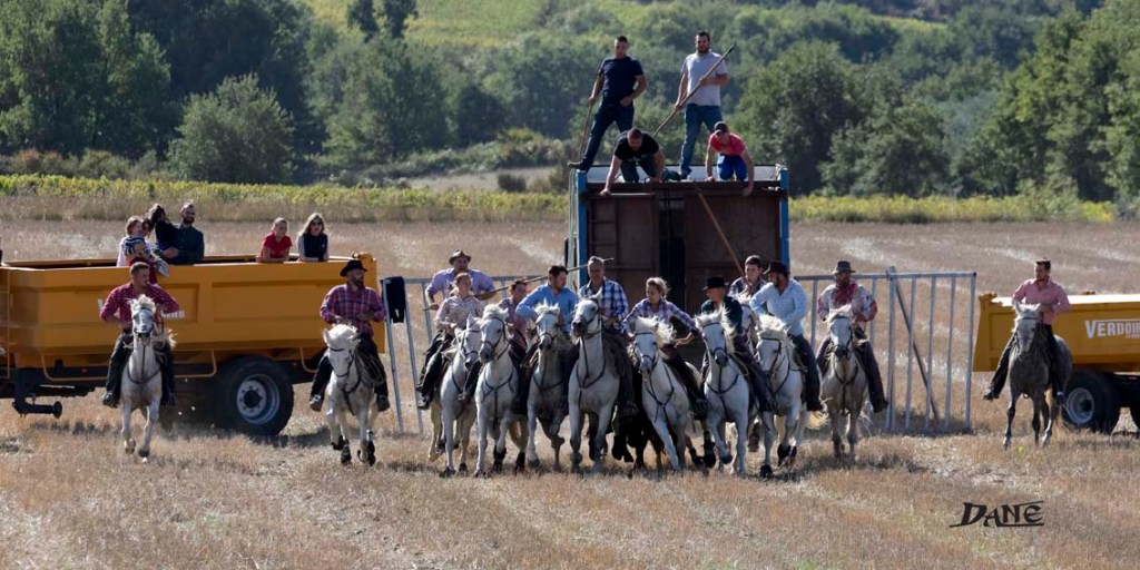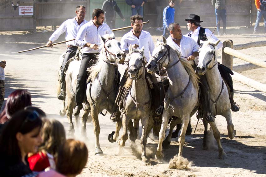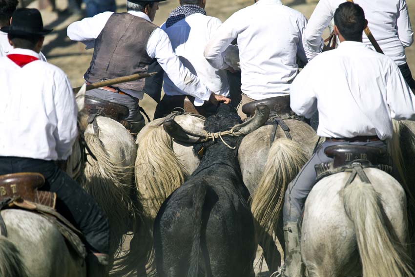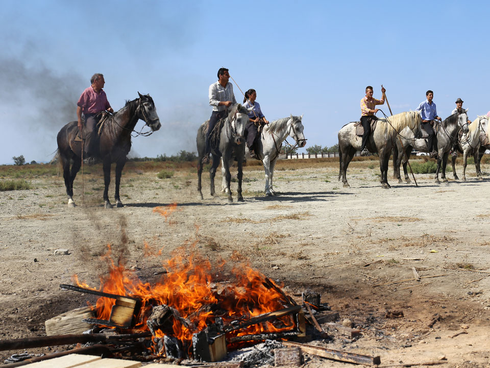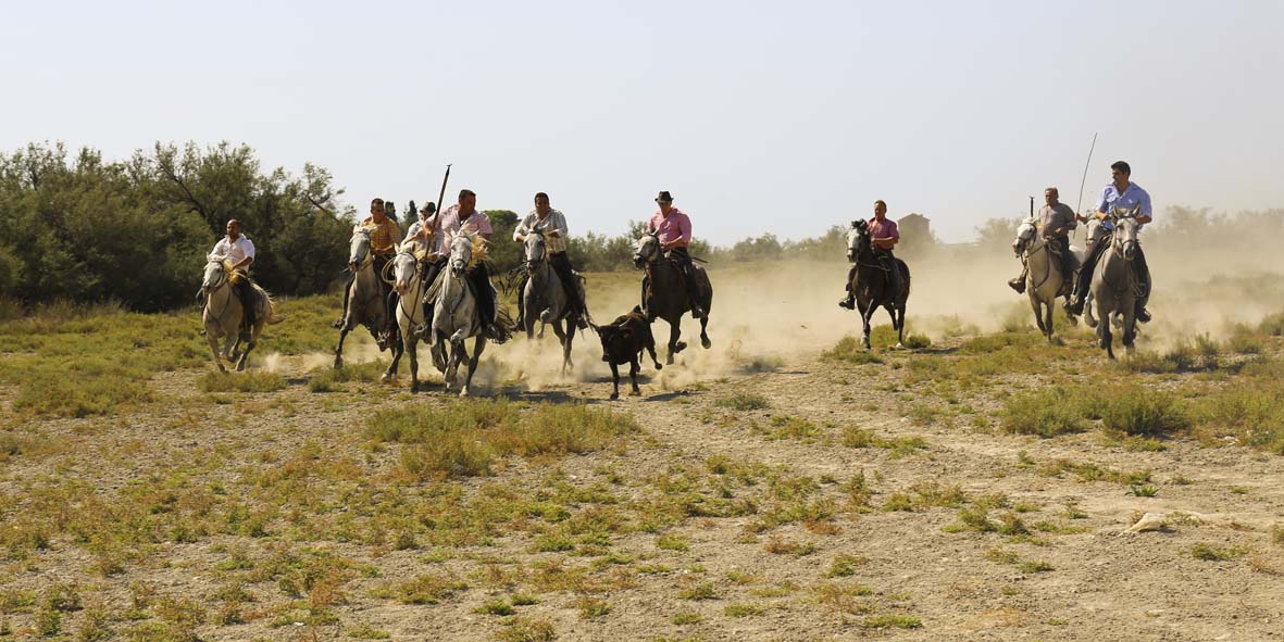 Les ferrades: les gardians rassemblent les jeunes taureaux et les isolent pour les marquer au fer à l’enseigne de la manade