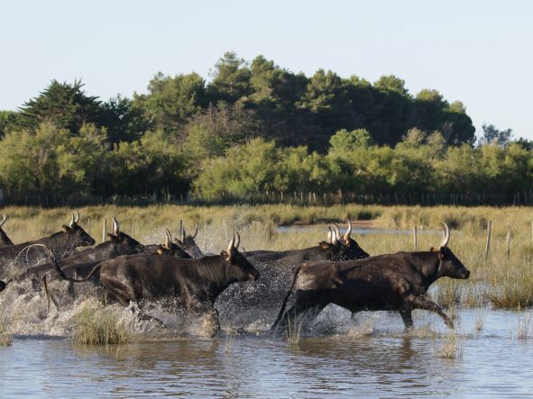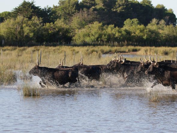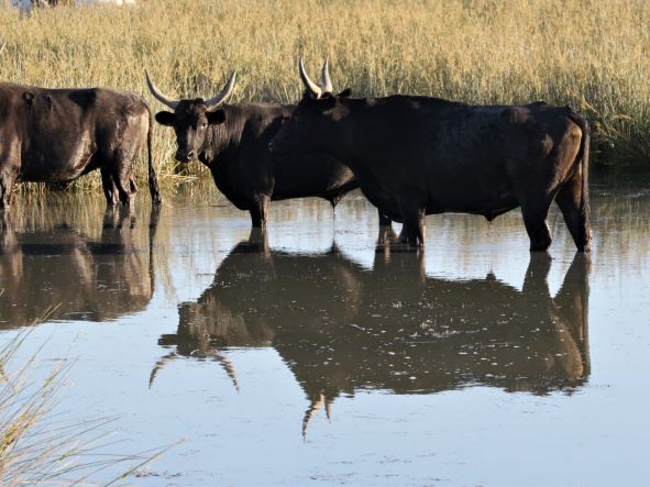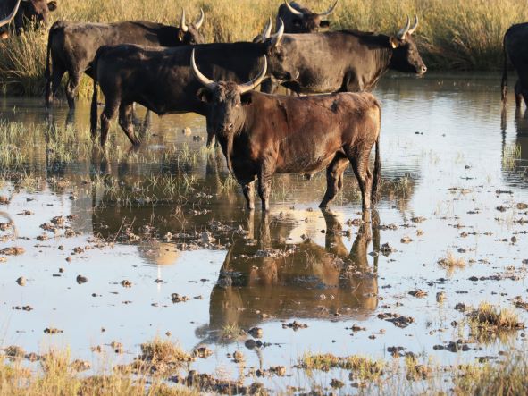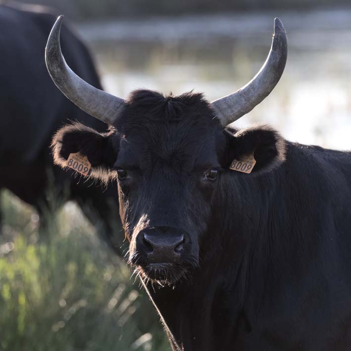 Des taureaux fiers avec des cornes en forme de lyre pour valider l’origine locale: